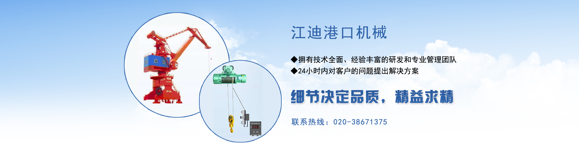 廣州江迪擁有10余名技術全面、經驗豐富的研發和專業管理團隊,其中博士1人,碩士2人。專業工程師6人。公司參股天津市華瑞港口機械設備有限公司。公司技術力量起步于港口起重設備,從理論研究、技術研發、生產制造到維修和技術改造,精研超過15年,設計、制造、維修的起重設備主要產品為:內核港口、企業碼頭集裝箱固定式起重機,包括抓斗吊鉤兩用的5t、10t、16t、25t、40t、50t等固定式起重機,還設計制造了船廠系列的20t、30t、40t等固定式和門座式起重機,產品幅射東北地區、渤海灣地區、長三角地區、珠三角和華南地區等多個省市大中型港口,特種設備檢驗一次通過率與長期使用安全合格率均為100%。團隊本著誠實守信與用戶至上的經營理念,生產安裝的產品和專業良好的售后服務,獲得用戶廣泛好評。